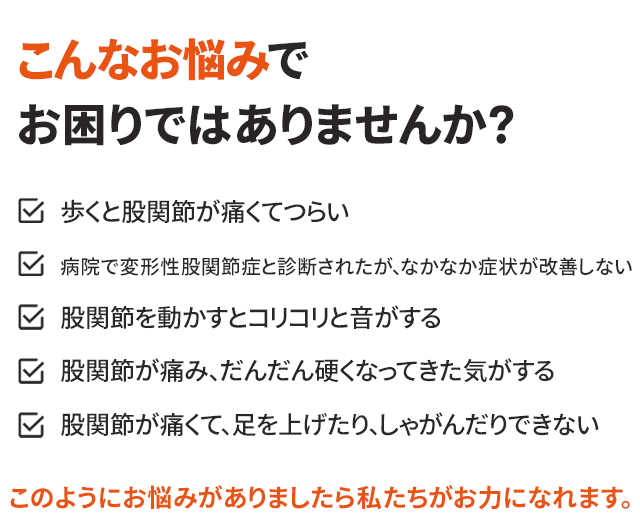 なぜ当院の施術で変形性股関節症の症状を改善に導くことができるのか?